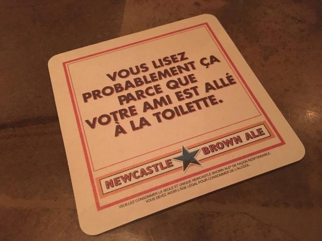 Why does Newcastle have French on their coasters?