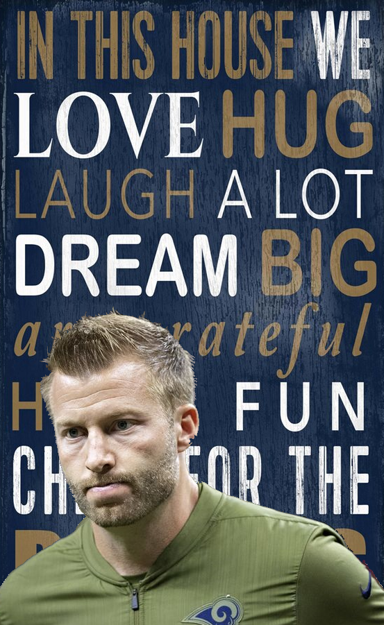 Sean McVay: Evening everyone. Sorry I’m late. Some stupid Tahoe was stuck just down the road there. Had to pull him out with my H1. Yeah, that’s right, I drive the big one.