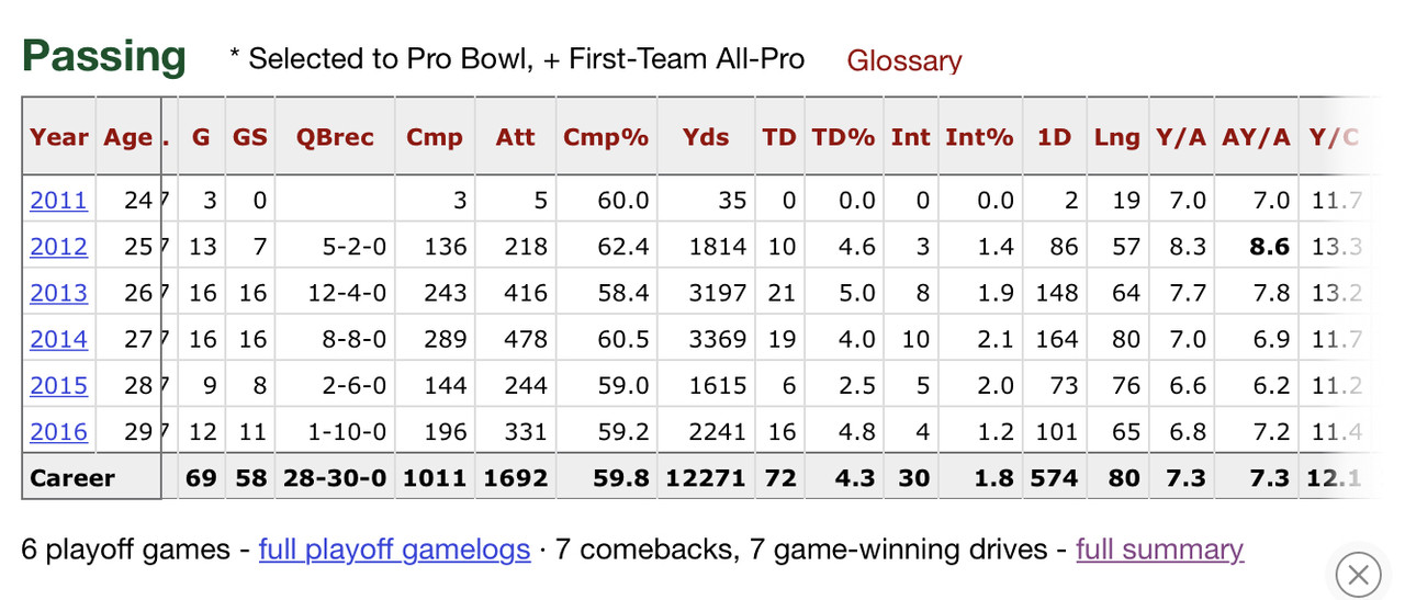Kaep’s Pasing Stats, via profootballreference.com