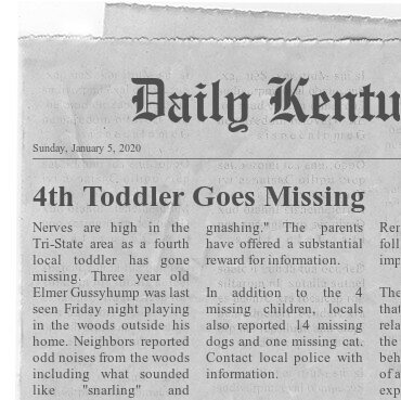 CZ: “‘In addition to the 4 missing children, locals also reported 14 missing dogs and one missing cat.’ That poor kitty!”