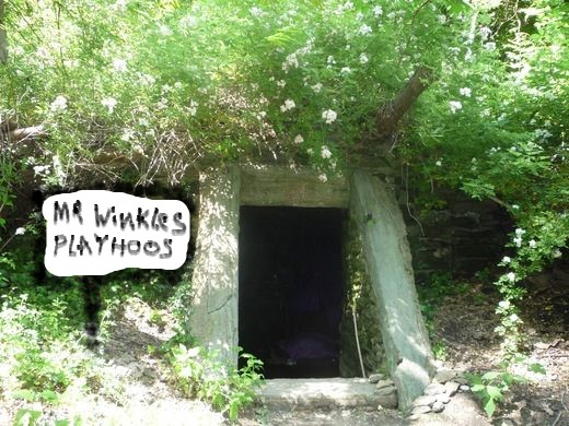 Coach begins to gag. Holding his nose he turns on the flashlight and enters the front door of the playhouse.