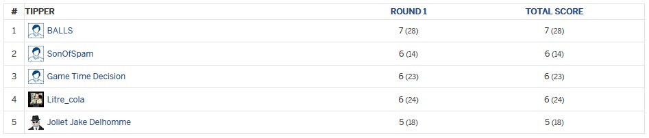 Ooooops. Didn’t realize Balls uses ESPN instead of the AFL site for teh tipping.
