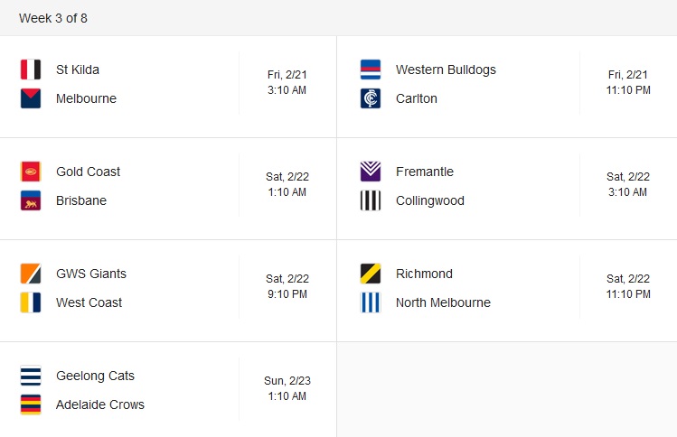 – Adelaide Crows v St. Kilda –