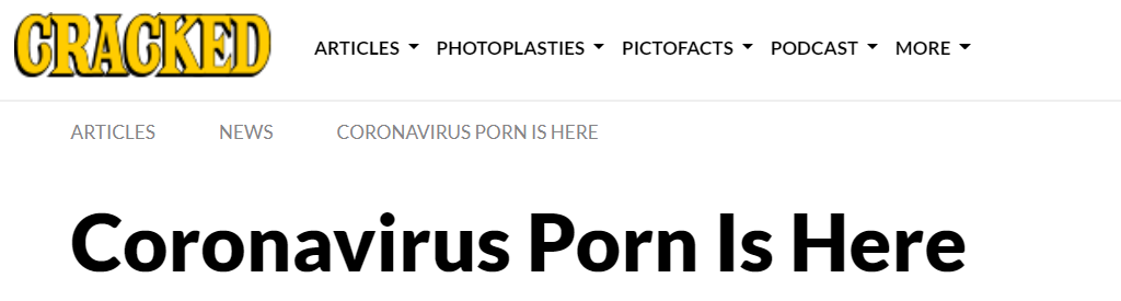 Yessir. The fine folks over at Cracked have followed up on the question asked by the weirdos over at Vice. Now, at [DFO] this type of query is normally reserved for killing time at the end of a Thursday Night blowout (pun intended). At first I thought Balls was the actual author. I mean, the terminology was accurate – “By March 4, 2020, a PornHub search for “coronavirus” produced 112 results.” – and the dedication to explaining the science bore all the hallmarks of a Balls Of Steel production
