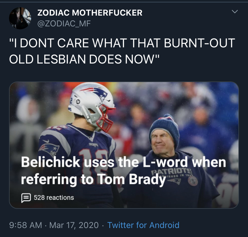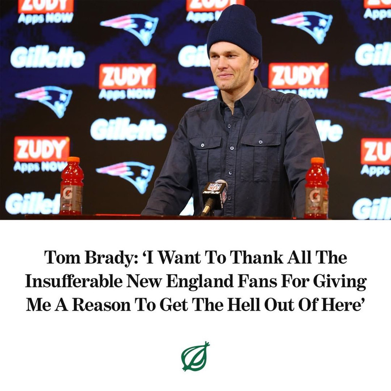 Eh, let’s be honest here, Brady’s age finally started catching up with him the past couple of years, so … it’s not like we’re losing that much in terms of QB play . Institutional memory? Leadership? Sure, but he’s been on the decline since before our last SB win. Tbh, I’d prefer him just retiring, but on the other hand, It’s gonna be fun to see him behind an OL that’s actively trying to kill him (like Indy in the prime of Luck’s career) or playing for some unimaginative turd of a coach to see how much he can cope outside of NE.