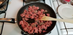 Using your undoubtedly sparkling clean hands, break the sausage up into small bits and get cooking over a medium heat.