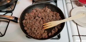 It’s only gonna take a few minutes to brown. We don’t want to fully cook just yet because it’s got more simmering to do.