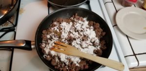 Stir around for a minute or so until you no longer see flour and the sausage kind of clumps together.