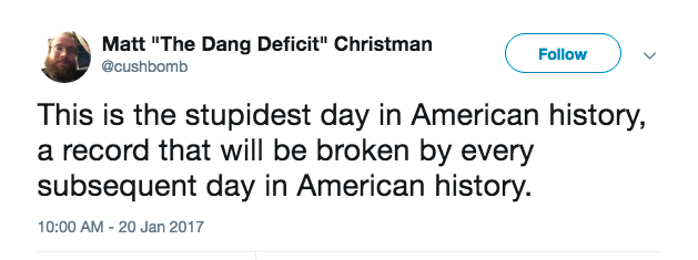 Hope he has changed his “twitter handle” to Matt “The Dang Nostradamus” Christman by now. Although I’ve been saying since he announced his candidacy that if he became the US’s 45th president, he would also be the US’s last president.