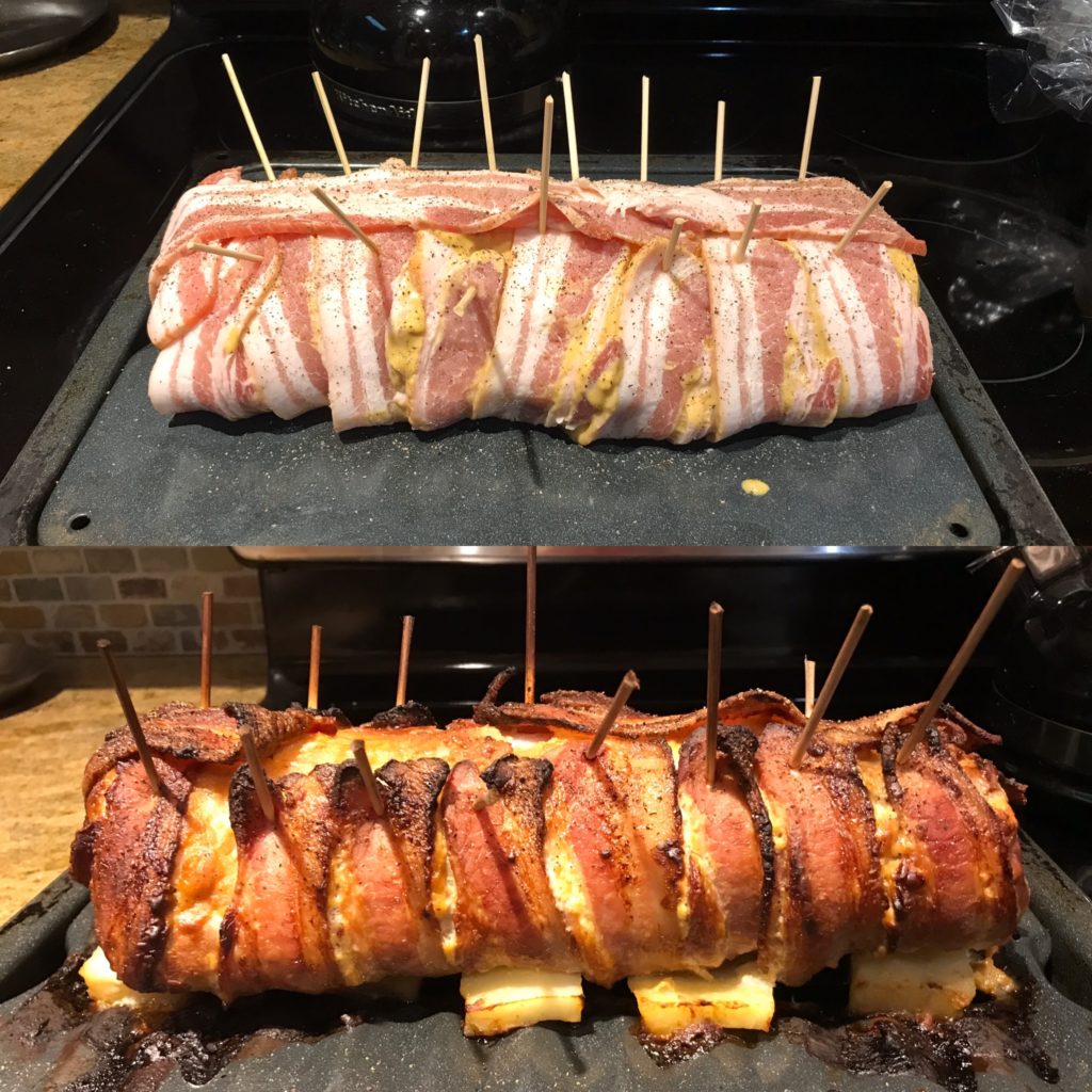 Thursday night, I took a frozen pork loin & a half-pack of unused bacon & turned that into a wrapped pork loin.