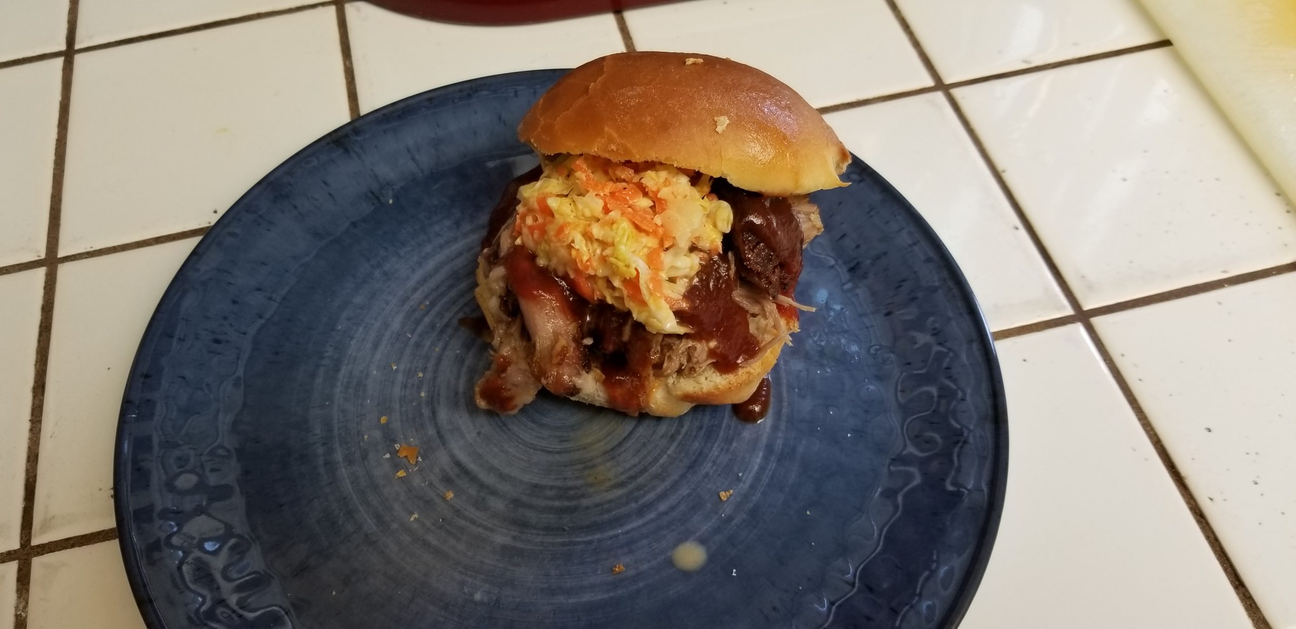 yeah right: The balance between everything was fucking incredible. Tang of the cole slaw, excellent depth of flavor from the sauce and honestly that is some righteous goddamn pork for not being smoked. The bun was excellent, probably my best batch yet but it left an odd dynamic. You know when you visit a real barbecue place and they give you a slice or 2 of Wonder Bread? I think of it as something to sop up the sauce with and a way to keep your hands clean. This damn bun though stood on it’s own with every other ingredient. Almost a distraction how good it was since I’m not used to having homemade bread with barbecue. Will this be made again? Fucking shit yes it will.