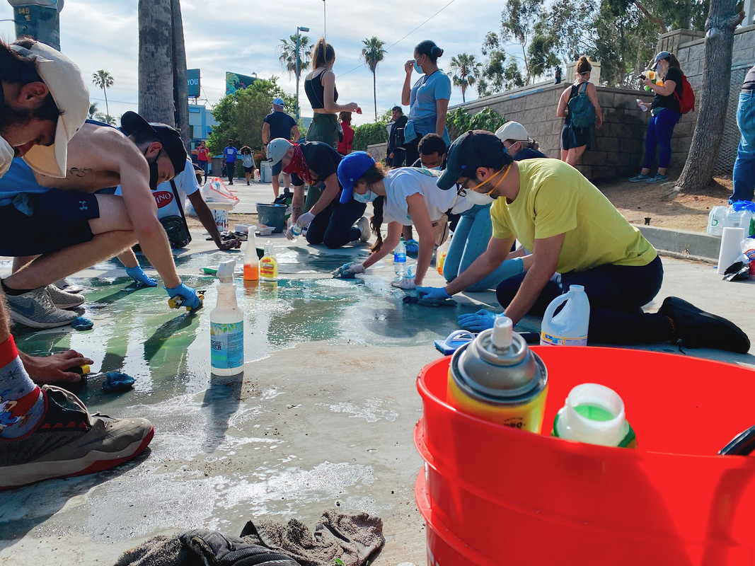 If you saw the video of L.A. protesters chasing off the cops in that intersection with the burning cop car, my brother took this in the same place this morning: