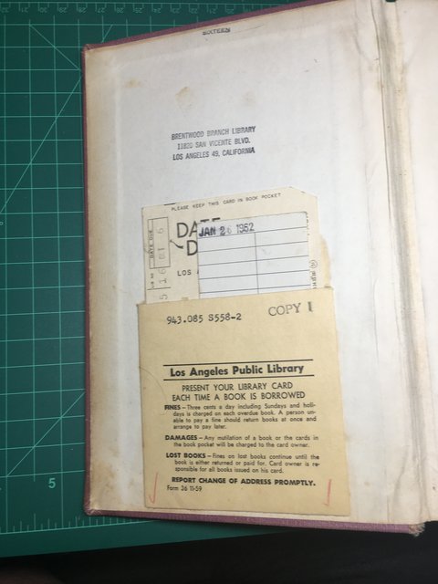 On the end there is The Rise and Fall of the Third Reich. I read a different copy of this in college, because I wrote a paper for a girl with big tits in exchange for me being allowed to fuck her every which way I could, before, during, and after I was writing it, and she was a grad student too (ask me about the other big-titted grad student who I wrote a paper for in exchange for doing the nasty and she is now the head of a big human-rights commission based in Paris). But look! There’s a Dewey Decimal System notation on the rugged spine! Is that a library book? It is!