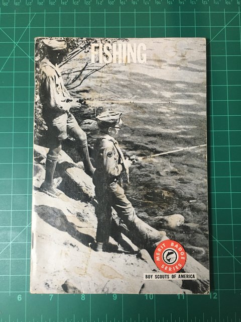 I got a fishing merit badge even though fishing frankly bores me. I’d rather drive the boat around. This pamphlet was published about fifty years before I was born.