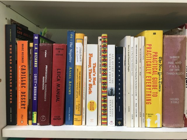 This section here is quite eclectic. I haven’t rearranged anything for these photos; the books are in the exact order I placed them there way back when, through whatever reasoning was going through my mind at the time. So what do we have here?