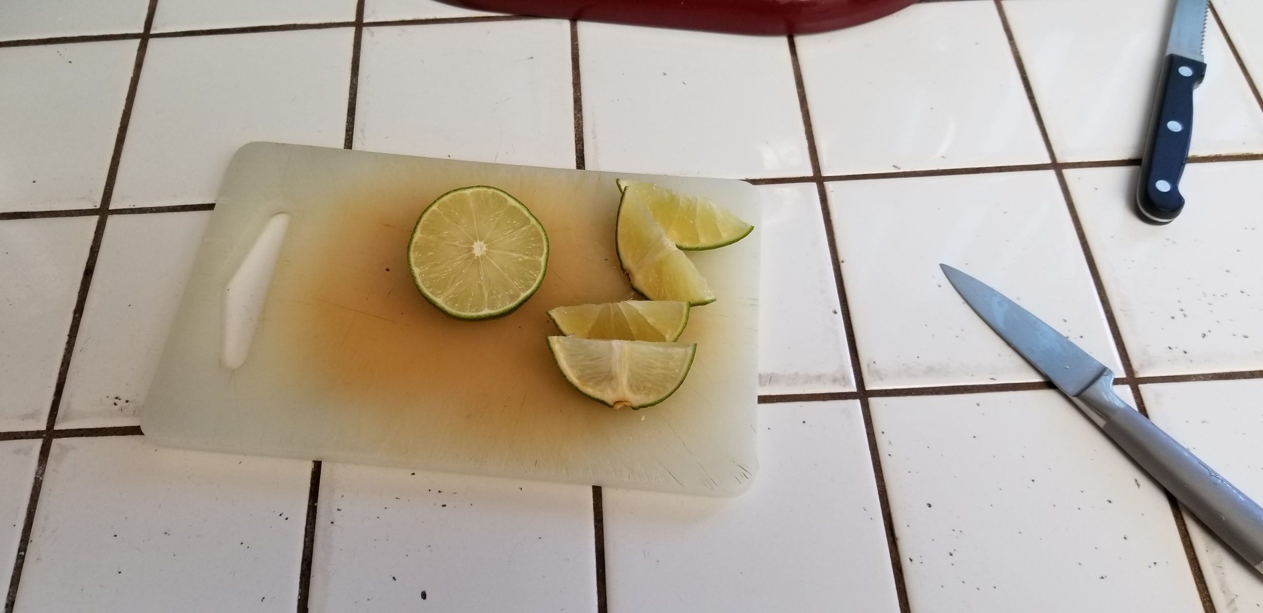 Slice your lime in half. Cut one half into wedges and reserve them for service.