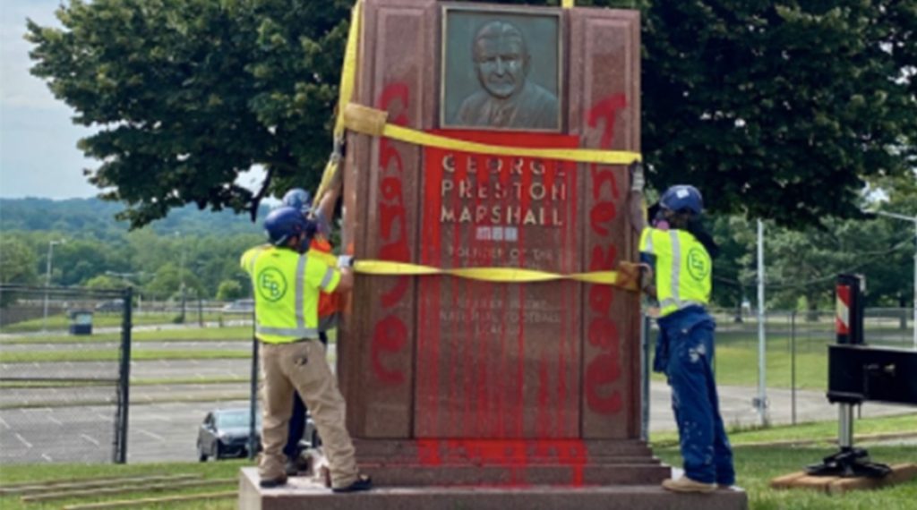 - Marshall’s statue was removed from outside old RFK Stadium last week, after it was vandalized.