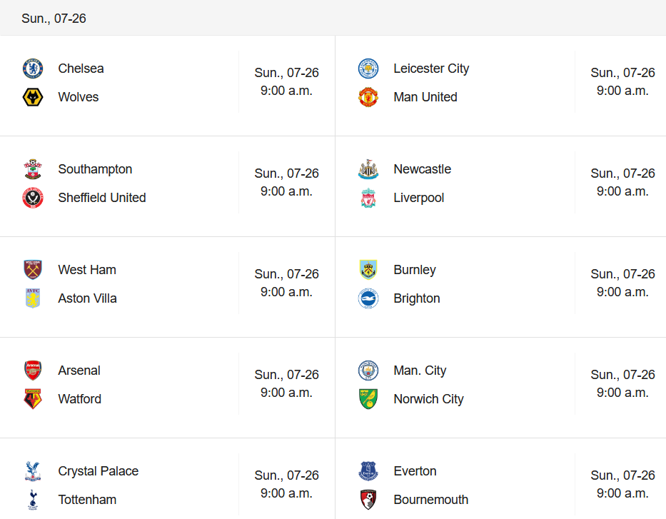 With the exception of one game, every match has positional repercussions. Most importantly, the Top 4 and relegation are all on the line today! What sucks is that the league should have tried and flexed the games around so that not all games are playing at once. C’mon Boris Johnson! If you’re going to copy all the shitty stuff America does, at least copy one good thing that they do. TV and EPL schedulers could do something like: relegation battles are the first batch of games, midtable/Europa implications at the middle and top 4 as the late night games. That’d be way better than what they have now. Keep your viewers watching your sport all day, as opposed to 90+ minutes. That’s a lot of ad money they’re missing out on.