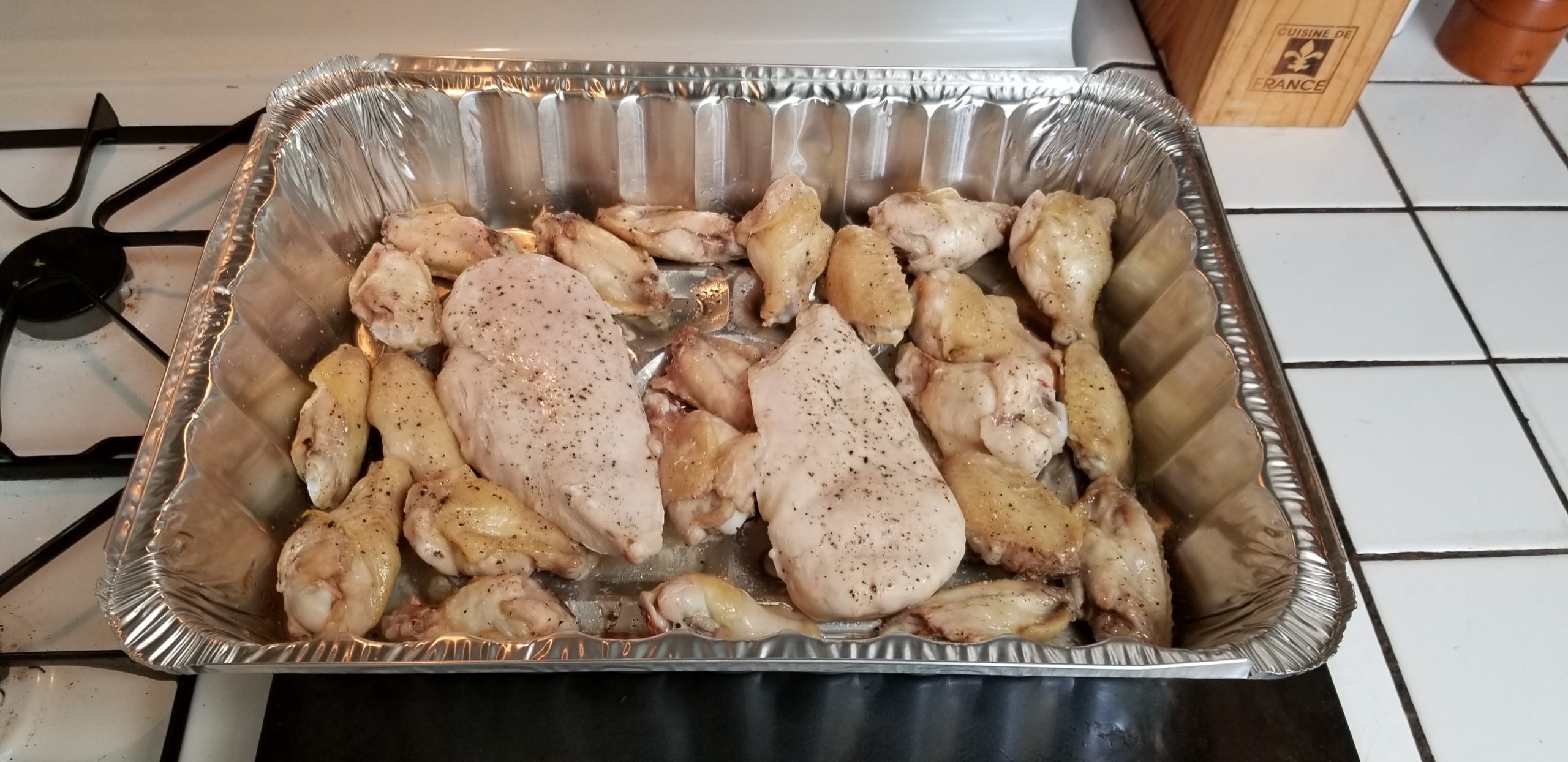 Yes there are also 2 boneless skinless chicken breasts in that pan. That’s cuz one of todays meal consumers doesn’t like eating chicken off the bone for some damn reason.
