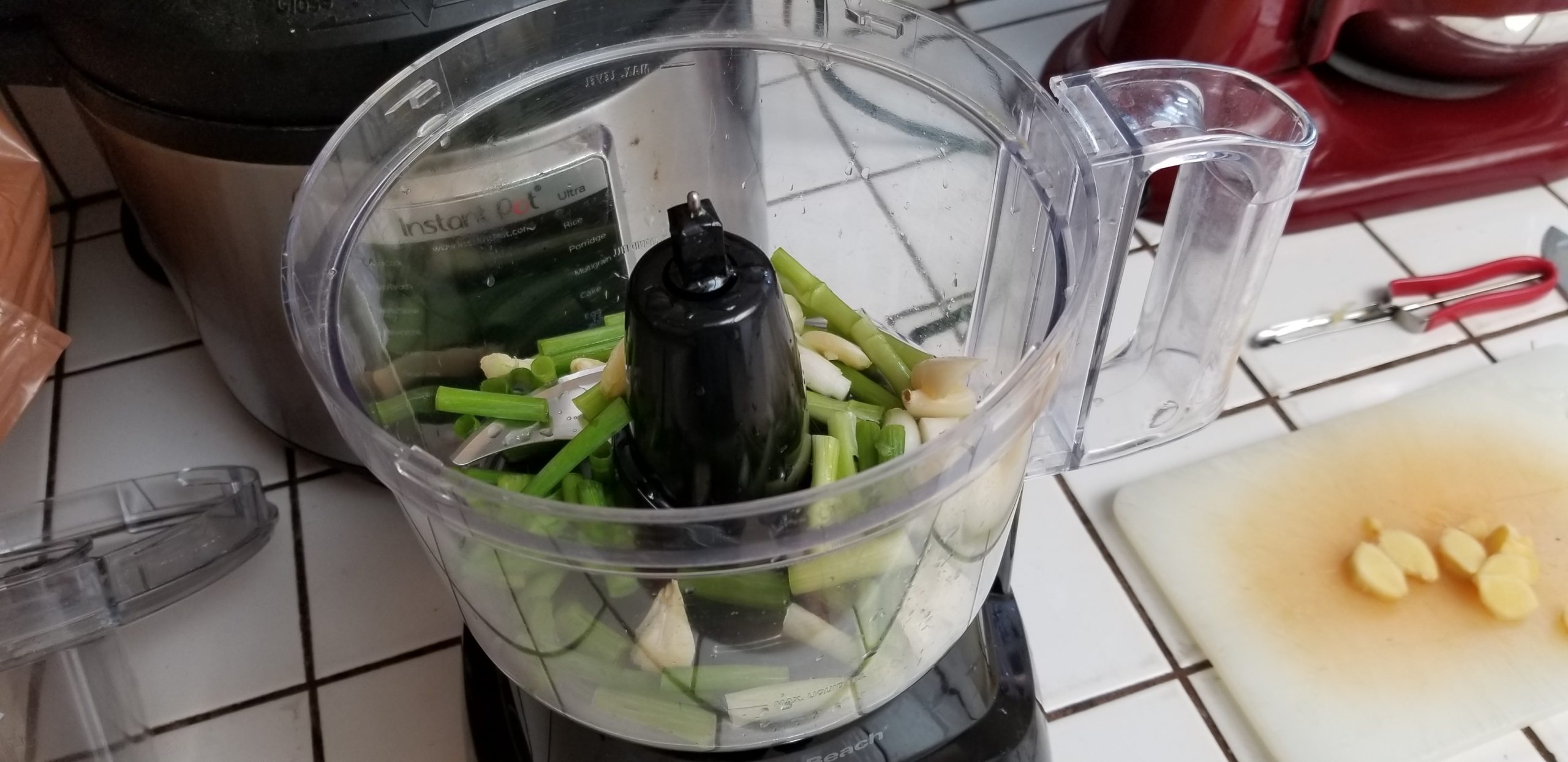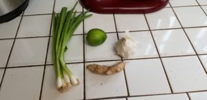 Break out your handy-goddamn-dandy food processor and get the garlic, ginger, scallions and lime juice in there.