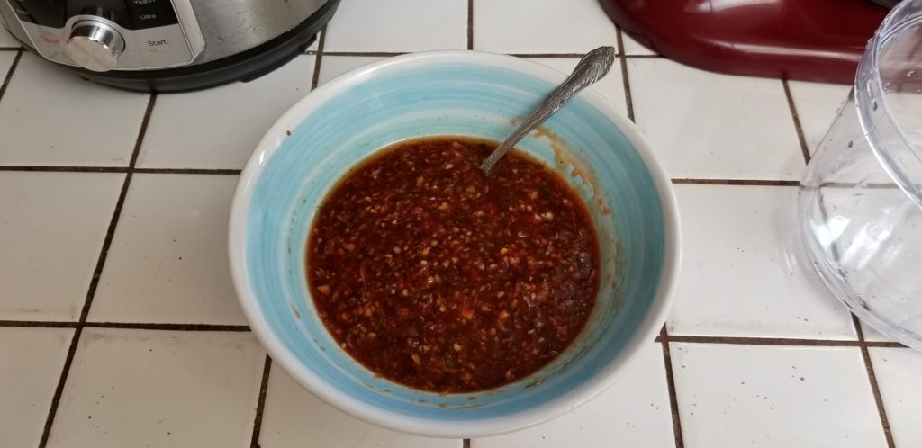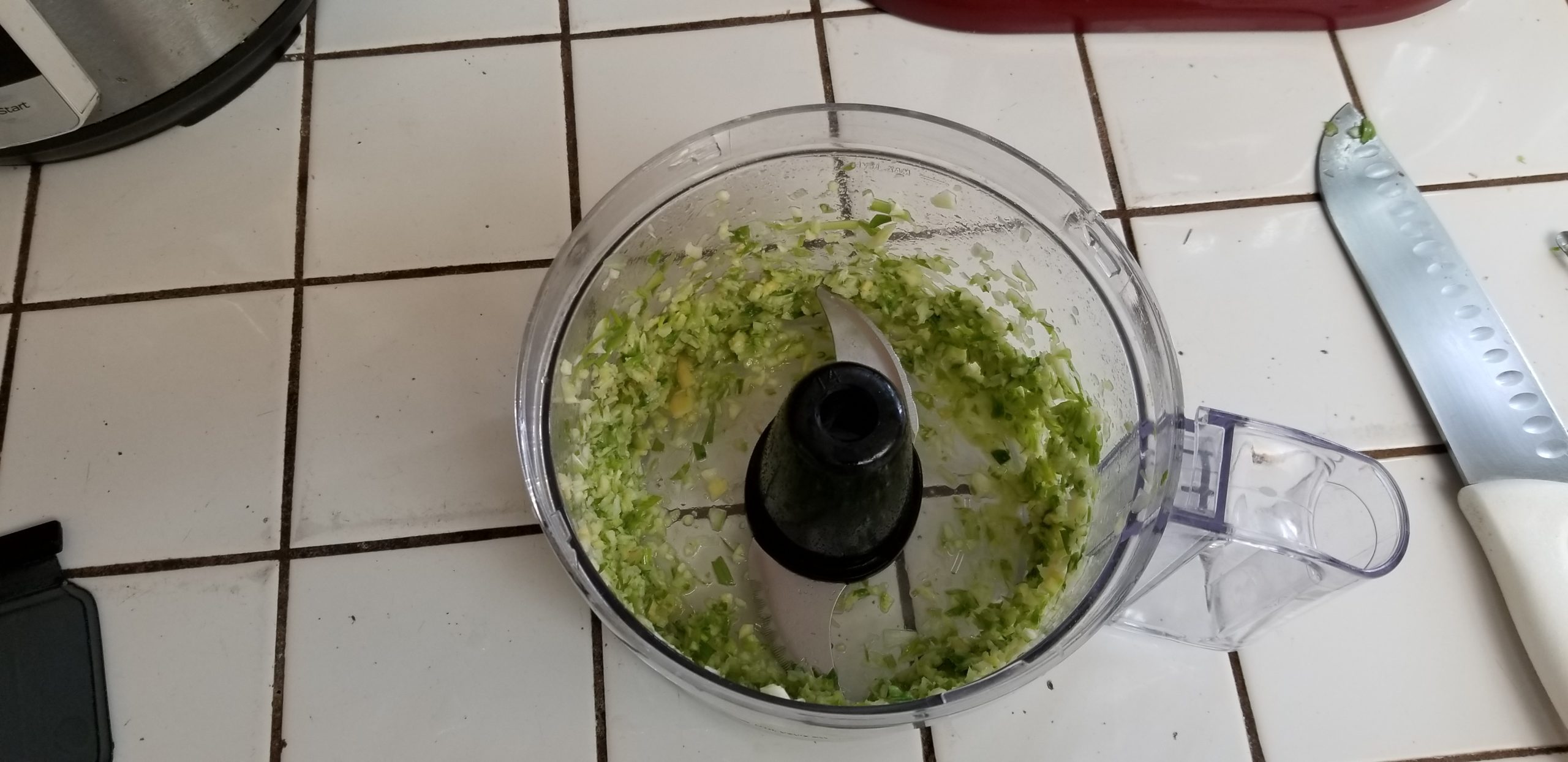This will only require a couple of pulses. You will get a serious olfactory assault when you take the lid off of the food processor. Ginger and lime notes and THERE IT IS! Garlic dammit!