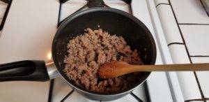 That’s about half a pound of sweet Italian sausage. This is the same sausage that was leftover from our Chicago Style Deep Dish Pizza post from last week.