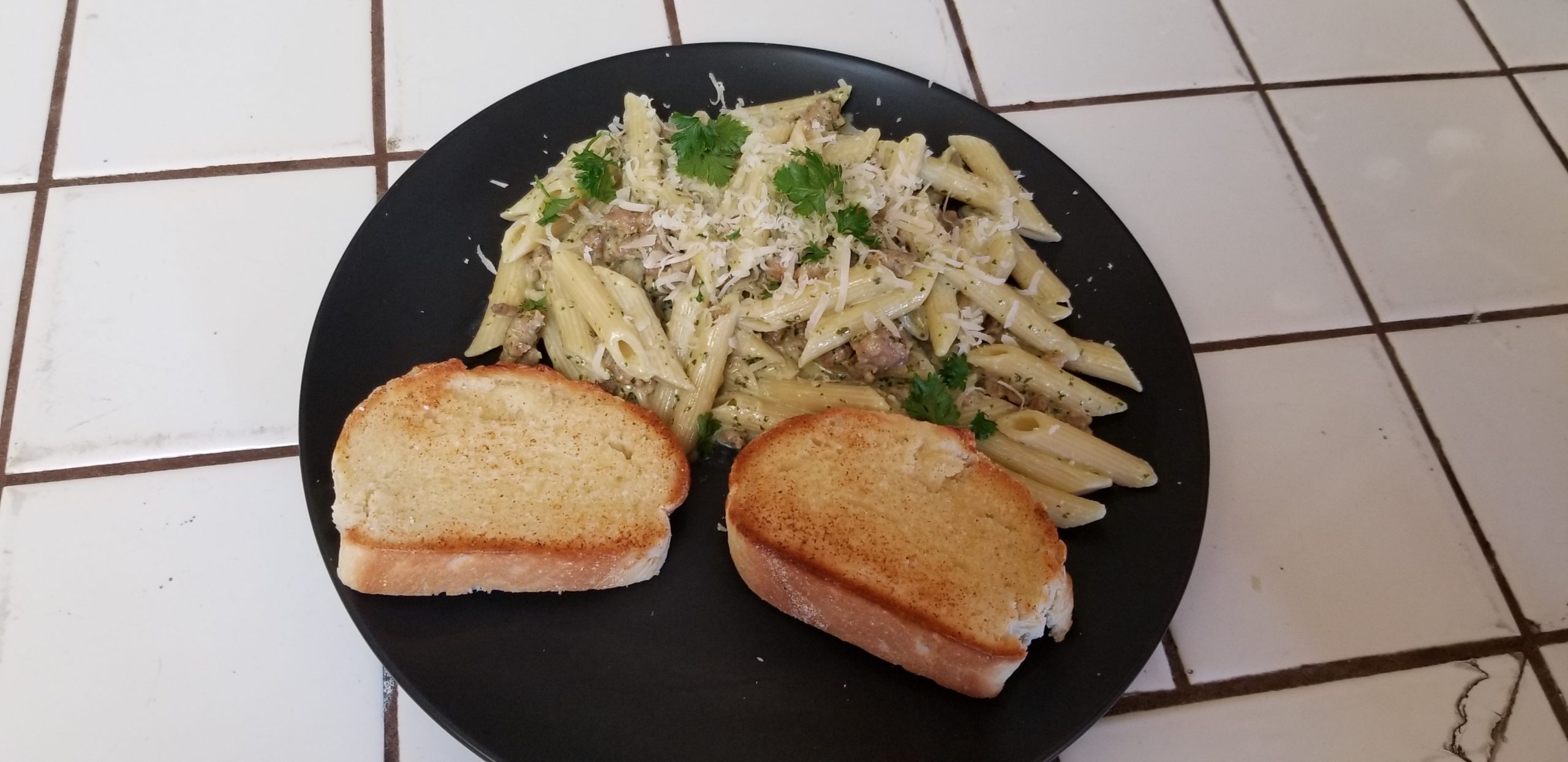 Oh yeah, the penne with pesto and sausage.