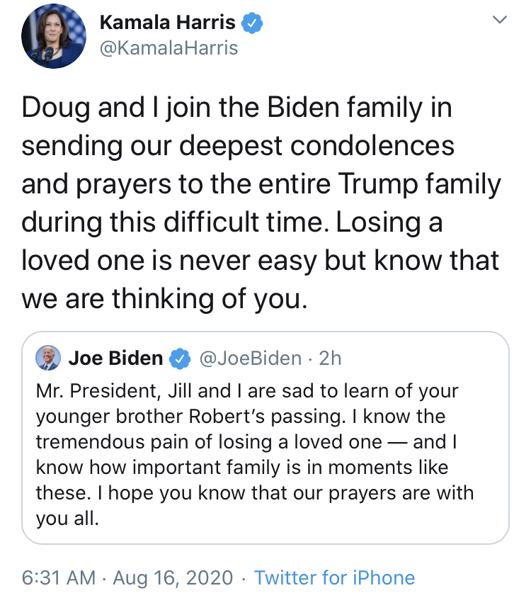 The entire (D) ticket mourning a child rapist who would gladly shit all over either of them if the tables were turned is…very on brand for the Democrats.