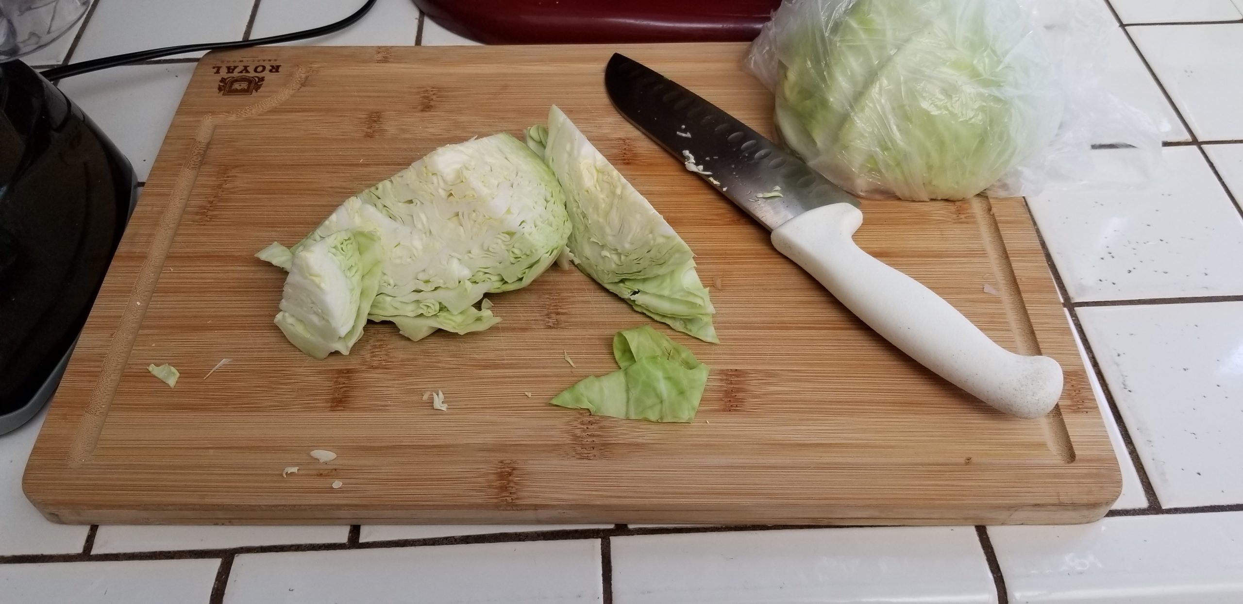 Get some cabbage and cut it into wedges.