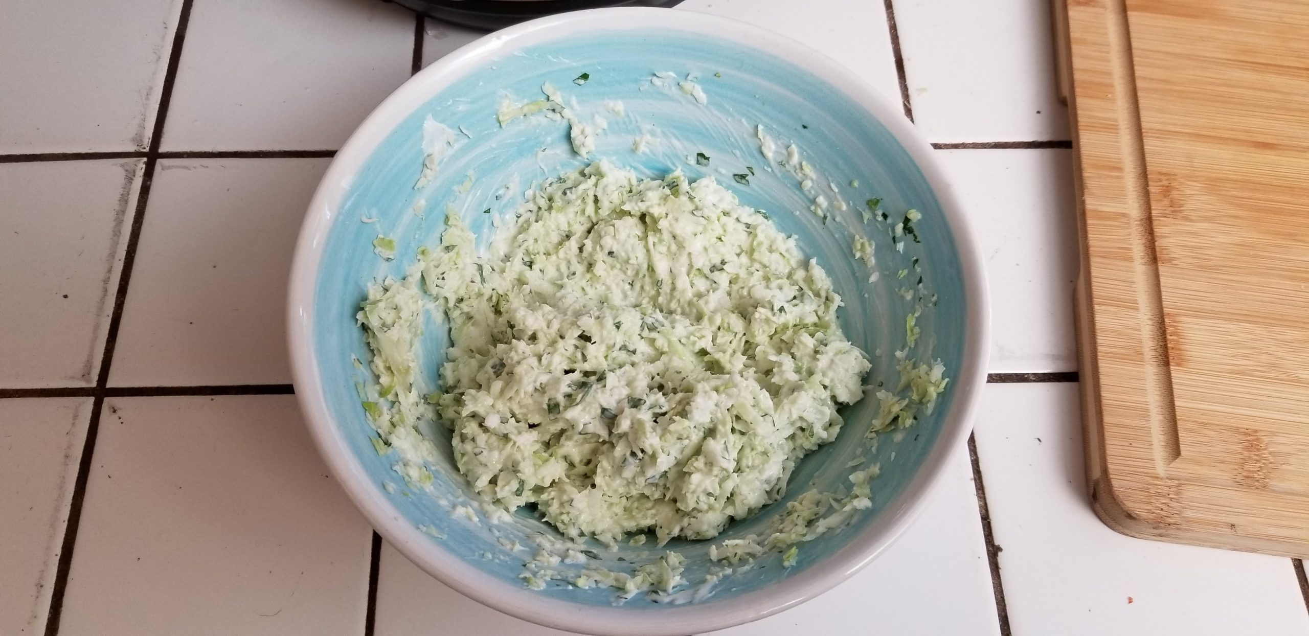 Now simply add the half batch of the crema to the slaw and mix to combine.