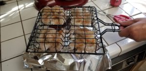 Your choice here. I tried cooking the salmon directly on the grill as well as cooking in foil. Fish can definitely stick to your grill surface especially with some brown sugar added to the mix. I had great results with both techniques. Just about 5 minutes per side.”