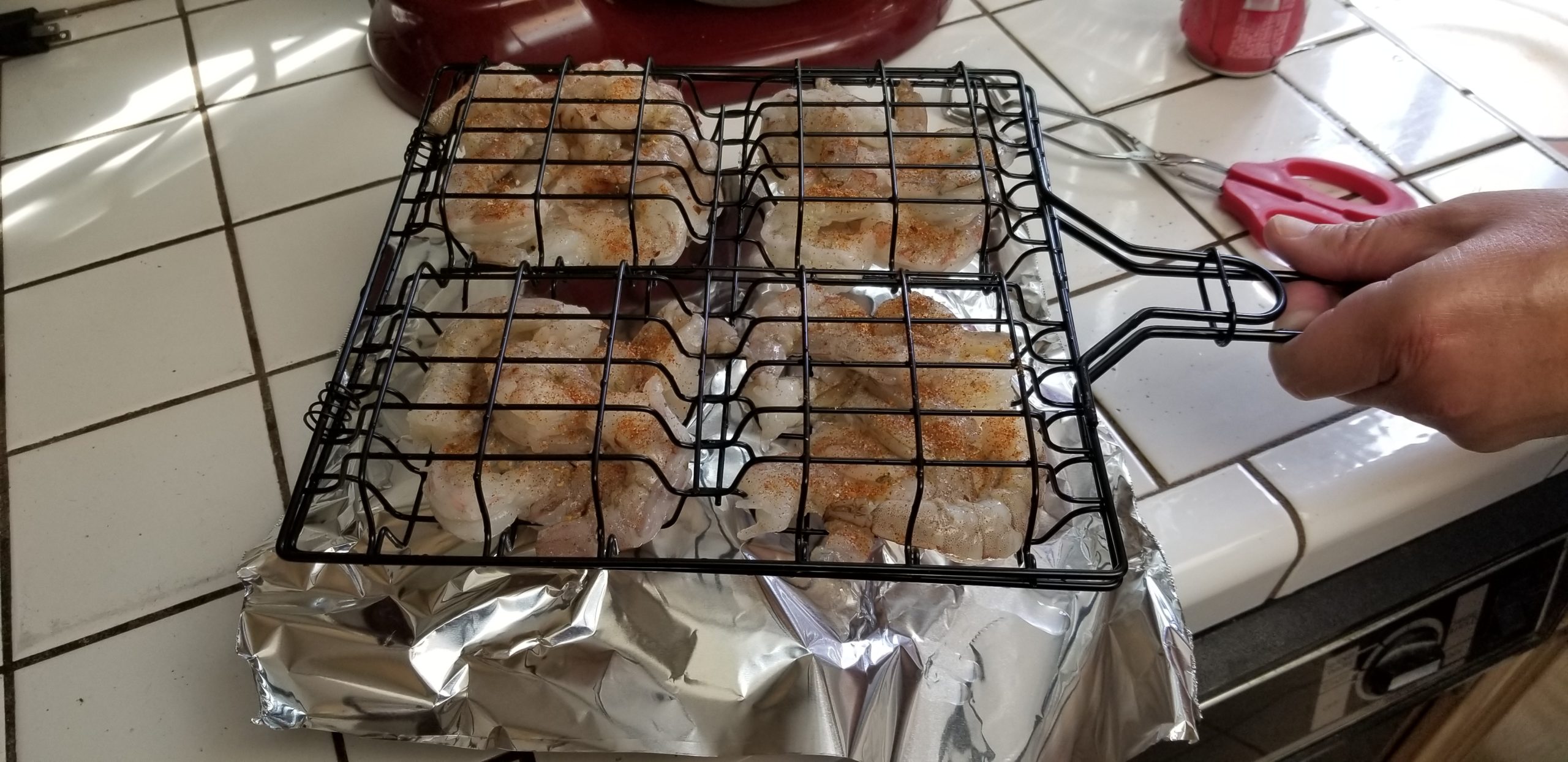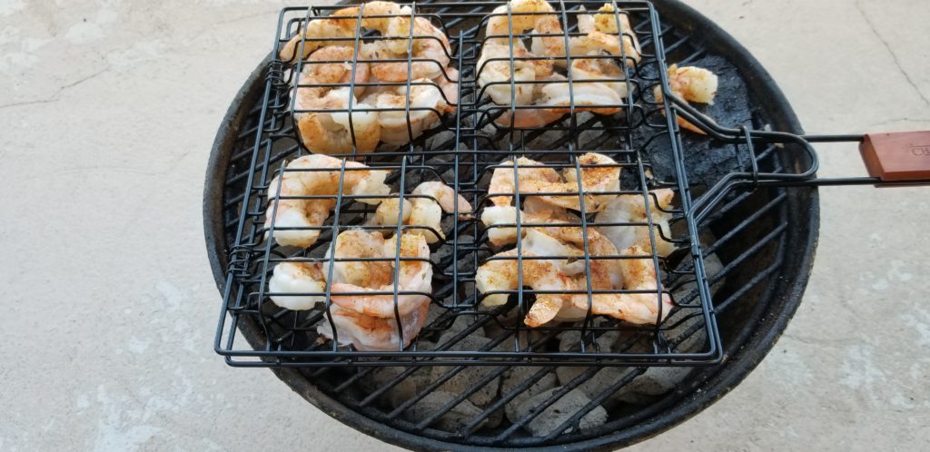 That would be the one, yes. Give the shrimp a fairly liberal coating of the spice blend and cozy them up in that grill basket.