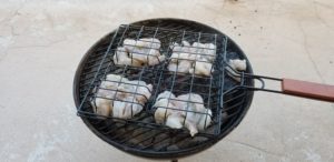 Get those salmon steaks on a charcoal fire grill.