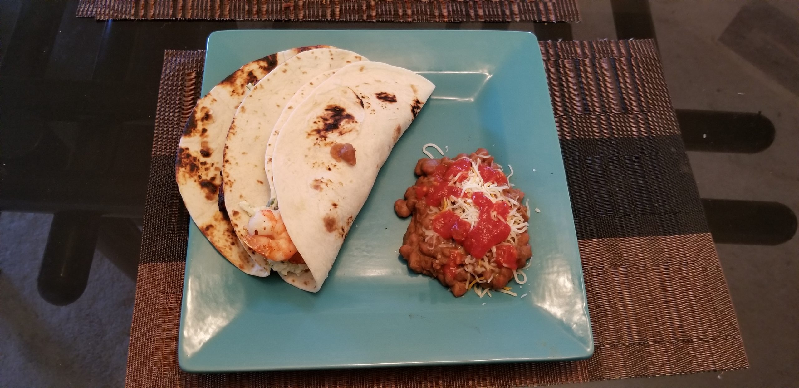 Now let’s grab a bite. Shrimp taco first.