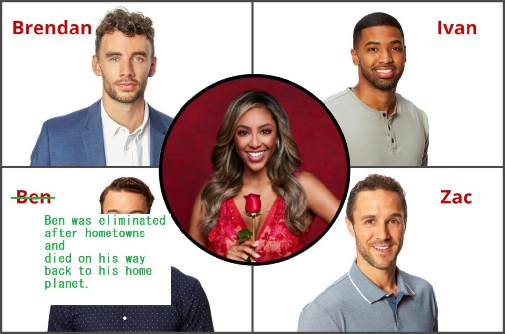 Tayshia — who you may recall from the banner image in one of TWBS’s Friday posts last year — is a pretty good Bachelorette. She seems more grounded and a lot more intelligent that the Hannah B.’s of the world. She’s also divorced. That’s a big thing they like to lean on for some reason. So she’s been doing her thing and, yeah, it’s pretty different. Nothing worth really discussing in detail here though so let’s move on to the remaining contestants as we prepare for night one of the two-night finale.
