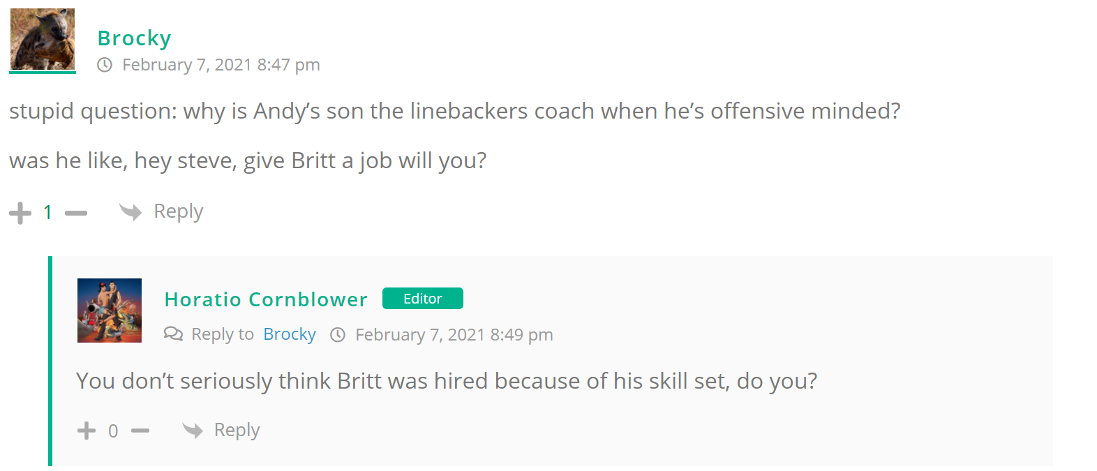 “I remember a time when a “line backer coach” was a mentor that taught you how to snort cocaine.” #staystrongBritt