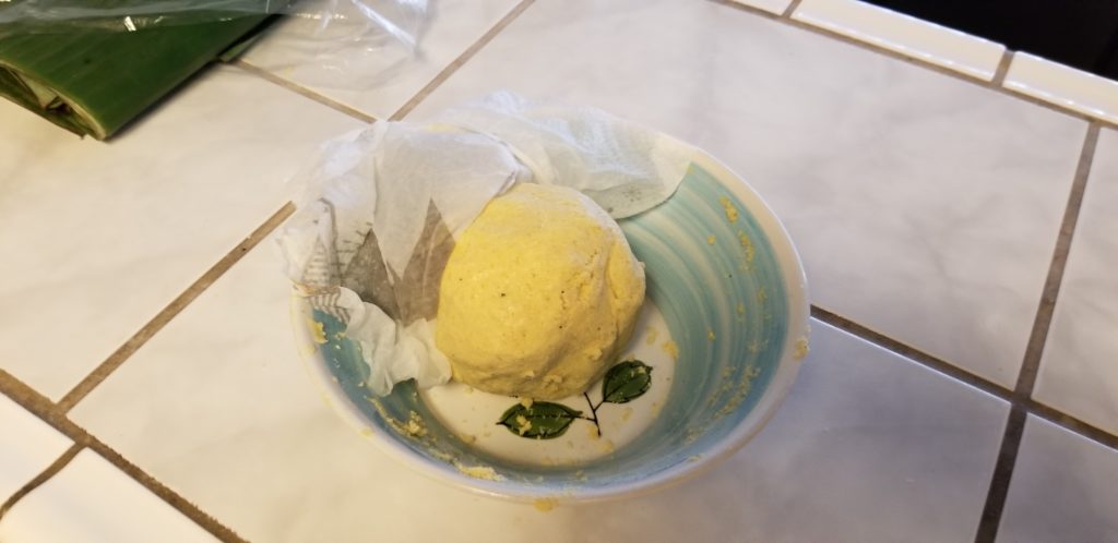 You may need to heat up the banana leaves to make them pliable. I rinsed mine under hot water and then fully dried them with a paper towel.