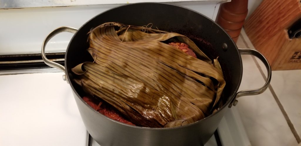 What is Cochinita Pibil you may be asking? Why it’s right in my motherfucking wheelhouse is what it is! It’s slow roasted pork shoulder cooked in herbs, citrus, spices and wrapped in banana leaves. AKA slow roasted Yucatán style pork. It’s a very old and very traditional dish. Originally it was slow cooked underground which also helps explain the use of the banana leaves.