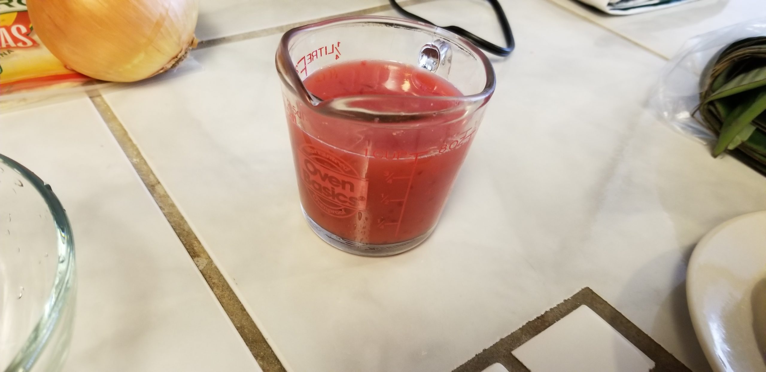 Combine the juices with the achiote paste. Pro tip: you’re going to need your blender. I tried using my immersion blender to save a dish or two but all I ended up doing was spraying red fucking food color all over the fucking kitchen.