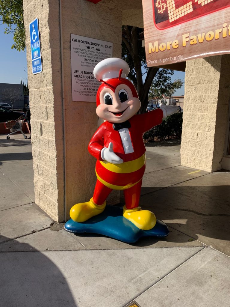 Love the “stolen shopping cart” sign. Jollibee is working some serious overtime on it’s “mascot game.” They are obviously trying to establish the cult-like following of the Big 3 “The Clown, The King and The Colonel” as Anthony Bourdain so eloquently out it.