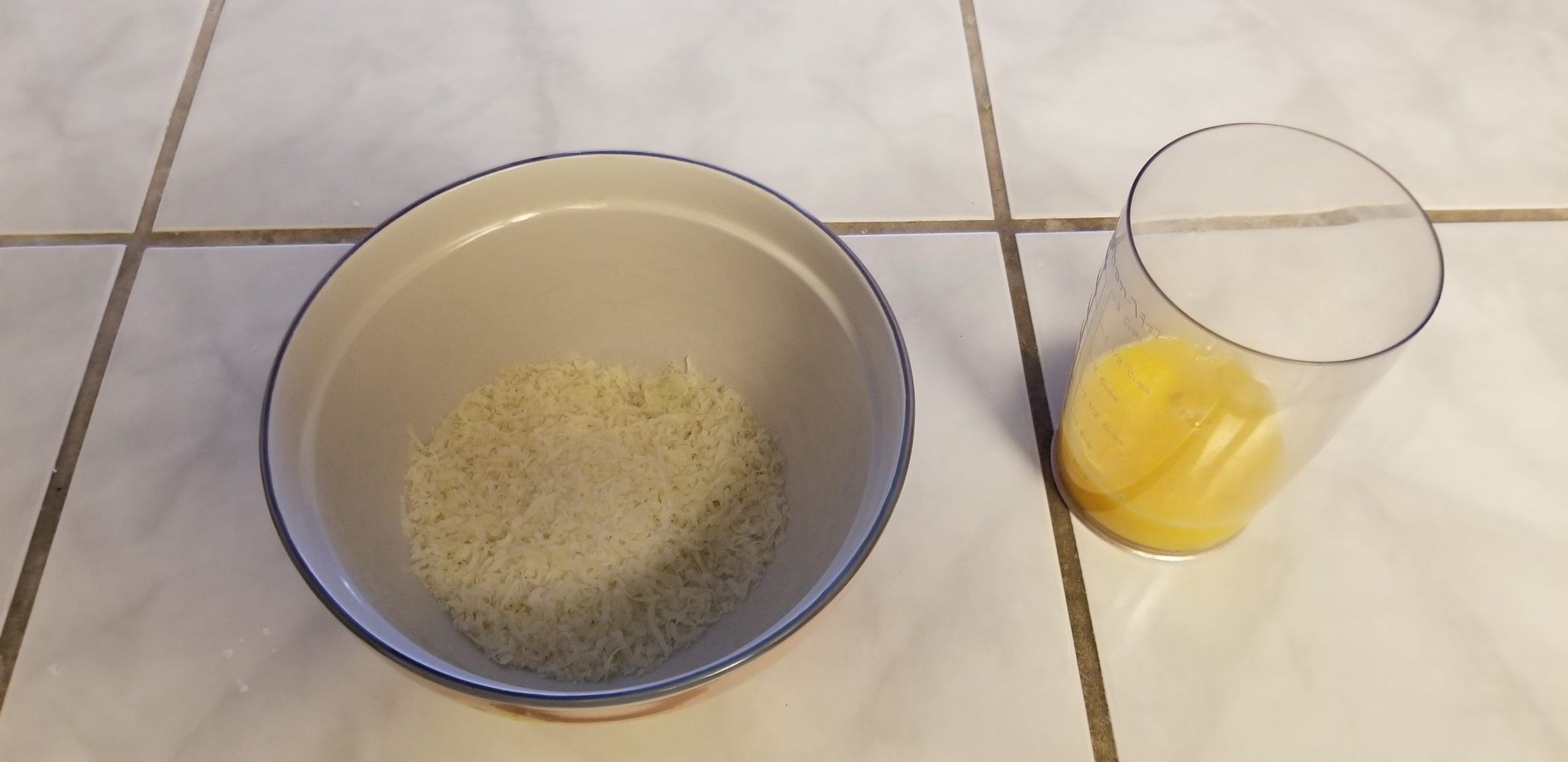 The yolks for the carbonara sauce and the white for the egg wash that bastes the bread.