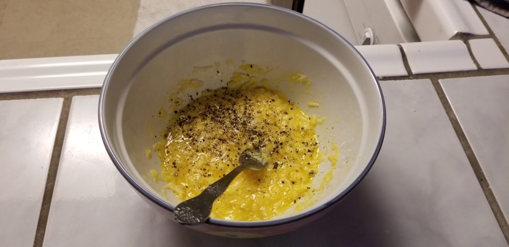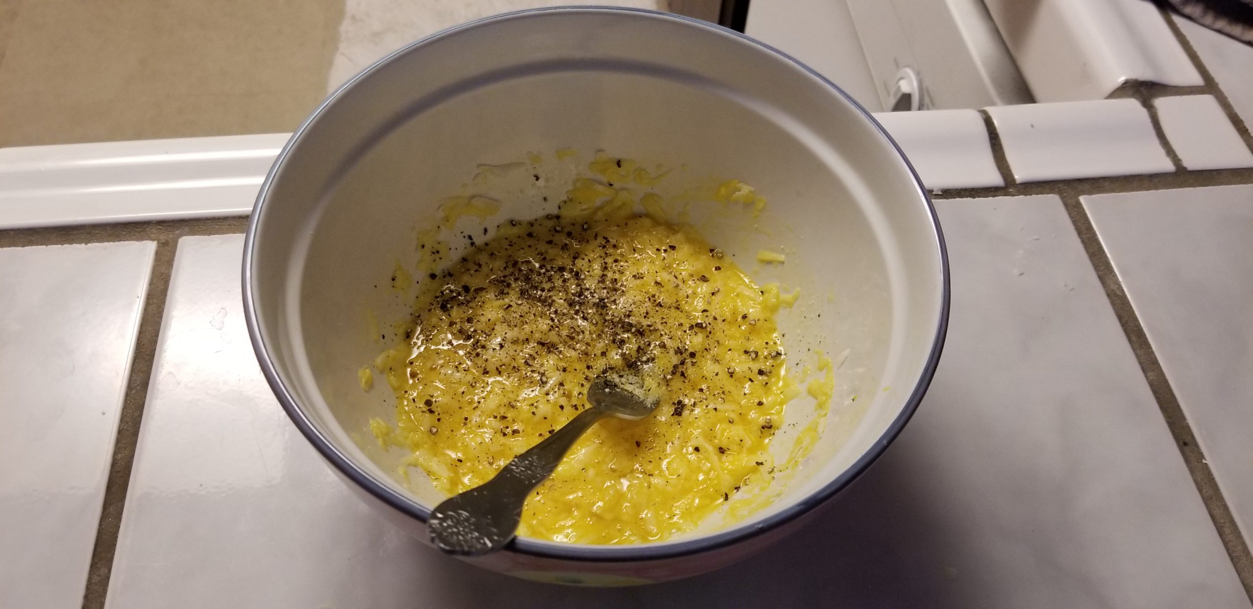 Give the eggs and the cheese a few healthy grinds of black pepper. We’ll add even more at the end.