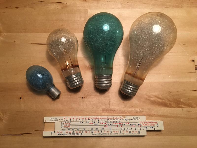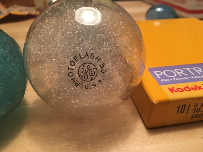 The #50 flashbulb on the right is what you really want for that. Its flash is more powerful than any portable electronic flash of any type. It’s atomic. They are coveted by spelunkers because they can light up vast caverns with maximum portability (it fits into the same Graflex holder above) and is fired by 2 D-cell batteries. When it fires (almost noiselessly) it can actually make your hair stand on end.