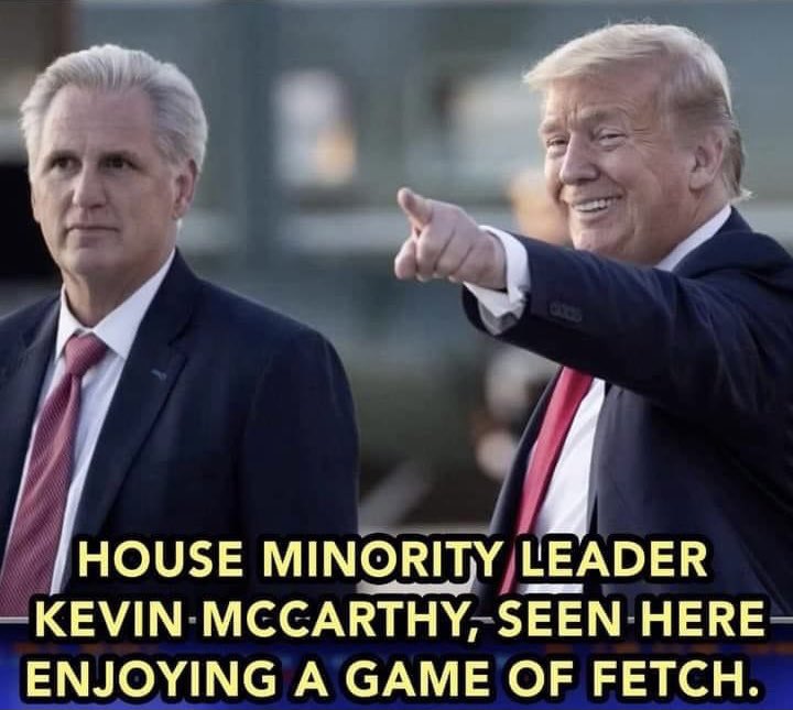 I love it when Trump only PRETENDS to throw the ball, and McCarthy races off and then stops, confused. That never gets old.