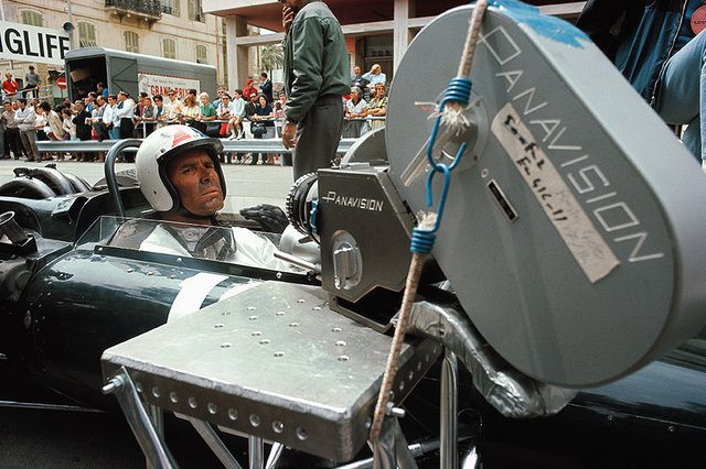 In the close-ups the drivers are actors James Garner (in front) and Brian Bedford (trying to pass, with the tartan-striped helmet). In the wide shots, Bedford’s car was actually driven by racing legend Jackie Stewart, and Garner’s car was driven by . . . James Garner. Stewart said that Garner was good enough to have been a pro racer.