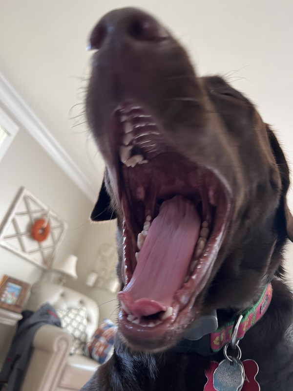 “I hear you,” Snyder said. “He’s just too big. She’s worried he’ll grow up and chew somebody’s face off.”