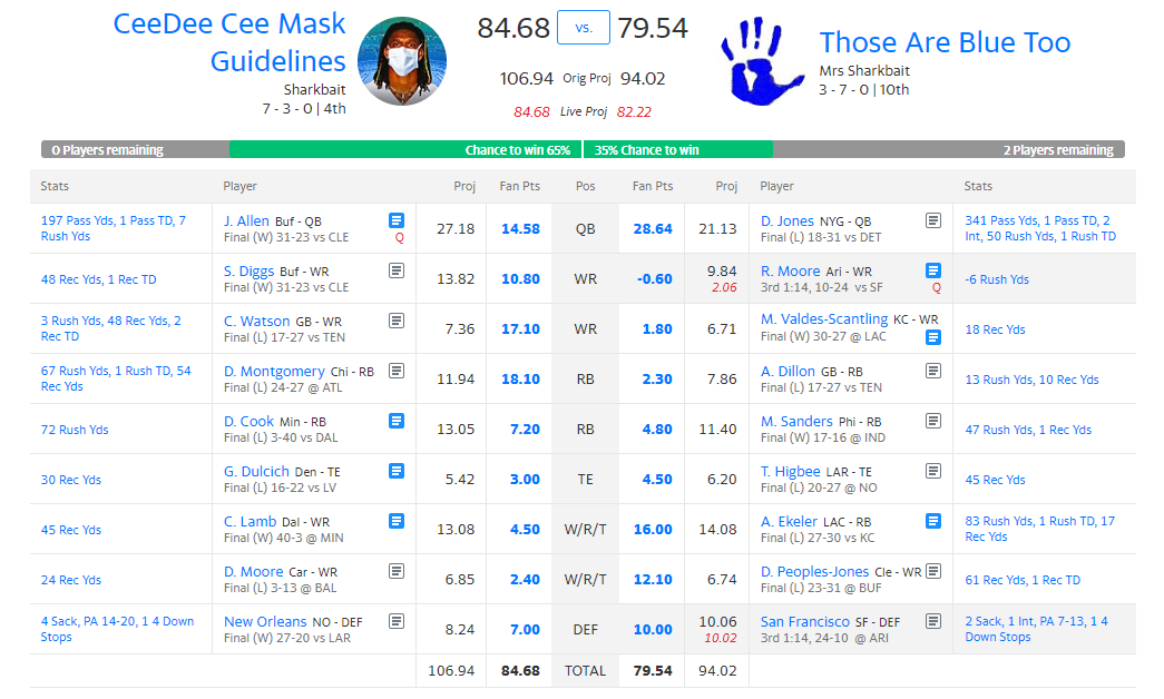She’s my fantasy football kryptonite. It’s been at least 2 seasons since I last won a matchup