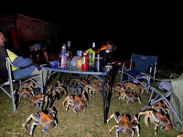 Here’s a coconut crab, also known as a robber crab, the largest crustacean in the world. If they get you down and there are enough of them (which there frequently are) they can eat you alive, strip your skeleton of all its flesh (usually assisted in later stages by maggots) and then take your bare bones back to their nests to strengthen them.