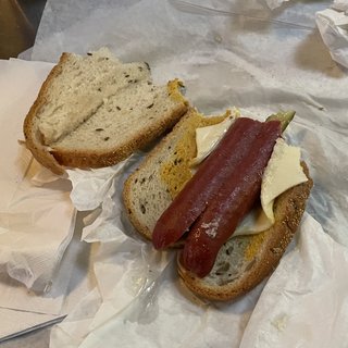 I’m surprised you don’t know Joe Jost’s and the sandwich special! I don’t usually fool you about SoCal. It’s a sausage, cheese, mustard, & pickle on rye.