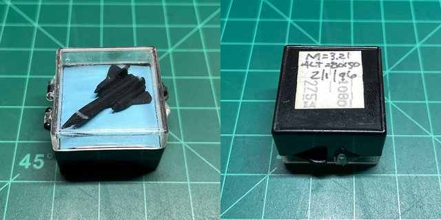 Here’s the SR-71 pin. The pilot carried them in the pocket on his space suit leg; after landing he noted them, and then handed them out to the camera crew (5 of us). It says: